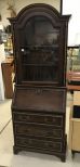 Modern Bamboo Border Small Secretary, two book shelves, single glass door, drop front desk, three bottom drawers, needs some cleaning, structure is good, 75"h., 27'w., 16"d. Modern Bamboo Border Small Secretary, two book shelves, single glass door, drop front desk, three bottom drawers, needs some cleaning, structure is good, 75"h., 27'w., 16"d.