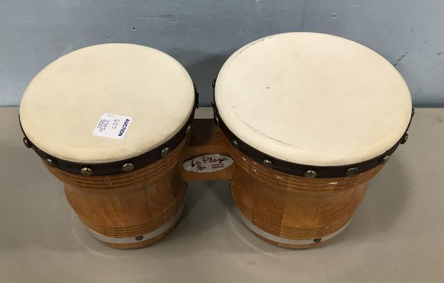 La Plays Mexico Drums, working condition, 7"h., 13"w. La Plays Mexico Drums, working condition, 7"h., 13"w.
