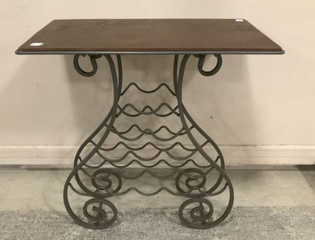 Modern Metal Wine Rack Table, silver painted base with painted wood top, 30"h., 28"w., 18"d. Modern Metal Wine Rack Table, silver painted base with painted wood top, 30"h., 28"w., 18"d.