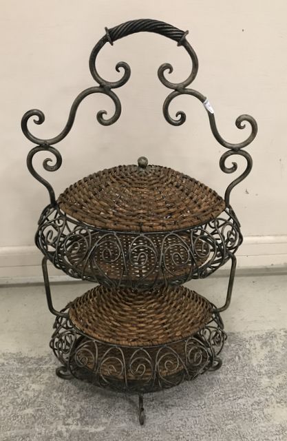 674 Modern Two Tier Wire & Wicker Kitchen Caddy