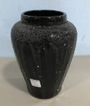 Hand Painted Black Pottery Vase, glazed, unmarked, 9"h., 6"dia. Hand Painted Black Pottery Vase, glazed, unmarked, 9"h., 6"dia.