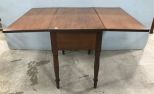 Antique drop leaf table, mahogany, carved legs, has some finish wear, 30"h., 52"w., 36"d. Antique drop leaf table, mahogany, carved legs, has some finish wear, 30"h., 52"w., 36"d.