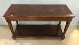 Modern TV Console Stand, single drawer, exposed to mildew, two tier, has finish wear, 28"h., 48"w., 18"d. Modern TV Console Stand, single drawer, exposed to mildew, two tier, has finish wear, 28"h., 48"w., 18"d.