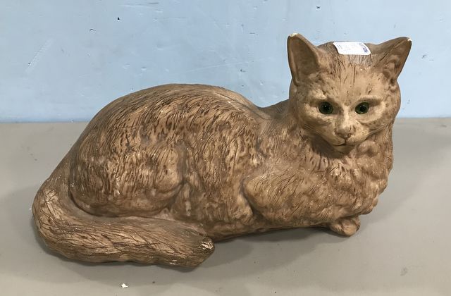 Eley Mold of Cat, signed on bottom, hand painted, ears have chipped, 12"w. Eley Mold of Cat, signed on bottom, hand painted, ears have chipped, 12"w.