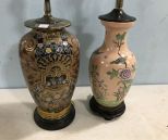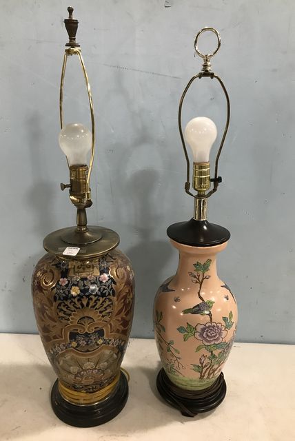 736 Pair of Hand Painted Ceramic Vase Lamps