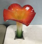 Pier 1 Art Glass Vase, crimped rim, decorative vase, 14"h. Pier 1 Art Glass Vase, crimped rim, decorative vase, 14"h.