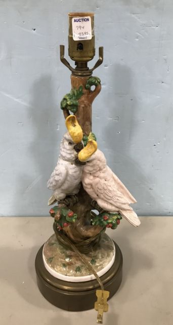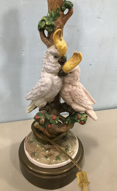 Hand Painted Ceramic Parrot Lamp, brass base, 17"h. Hand Painted Ceramic Parrot Lamp, brass base, 17"h.