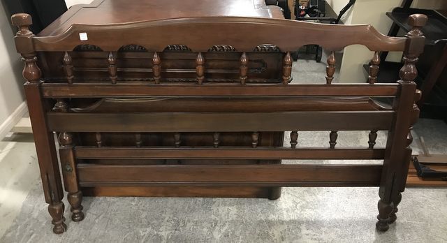 Early American Style Full Size Bed, has metal rails. Early American Style Full Size Bed, has metal rails.