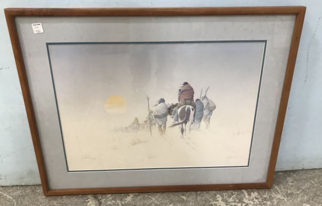 Native American Artist Proof Print, Donald Vann 1985, 430/1800, framed, 24"h., 31"w. Native American Artist Proof Print, Donald Vann 1985, 430/1800, framed, 24"h., 31"w.