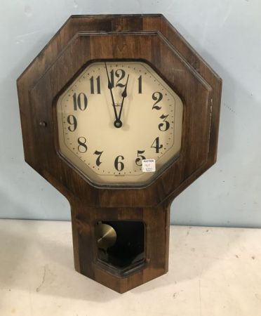 Verichron Battery Powered Wall Clock, with pendulum, glass door, 23"h., 14"w. Verichron Battery Powered Wall Clock, with pendulum, glass door, 23"h., 14"w.