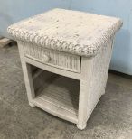 White Painted Single Drawer Side Table, open front storage, 24"h., 20"w. White Painted Single Drawer Side Table, open front storage, 24"h., 20"w.
