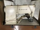 Singer Sewing Machine in Cabinet, lift top, faux drawer, 30"h., 24"w., 18"d. Singer Sewing Machine in Cabinet, lift top, faux drawer, 30"h., 24"w., 18"d.