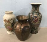 Chinese hand painted vase 14"h., Japanese peacock vase, copper vase. Chinese hand painted vase 14"h., Japanese peacock vase, copper vase.