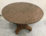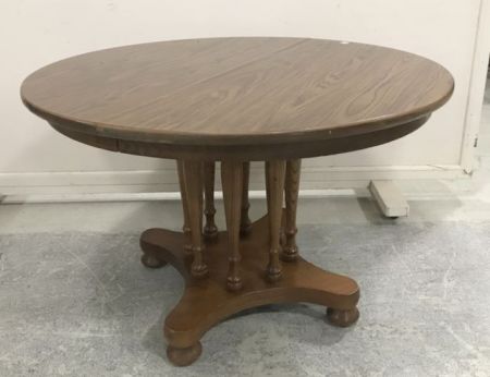 Pressed Wood Illuminated Wood Round Dinning Table, pedestal base, no leaves, needs cleaning, 29"h., 45"dia. Pressed Wood Illuminated Wood Round Dinning Table, pedestal base, no leaves, needs cleaning, 29"h., 45"dia.