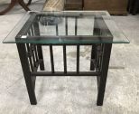 Modern Metal Glass Top Accent Table, beveled glass top, 21"h., 24"w. Modern Metal Glass Top Accent Table, beveled glass top, 21"h., 24"w.