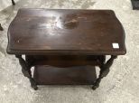 Cherry Three Tier Side Stand, two shelves, and magazine rack, has finish wear, 23"h., 20"w., 11"h. Cherry Three Tier Side Stand, two shelves, and magazine rack, has finish wear, 23"h., 20"w., 11"h.
