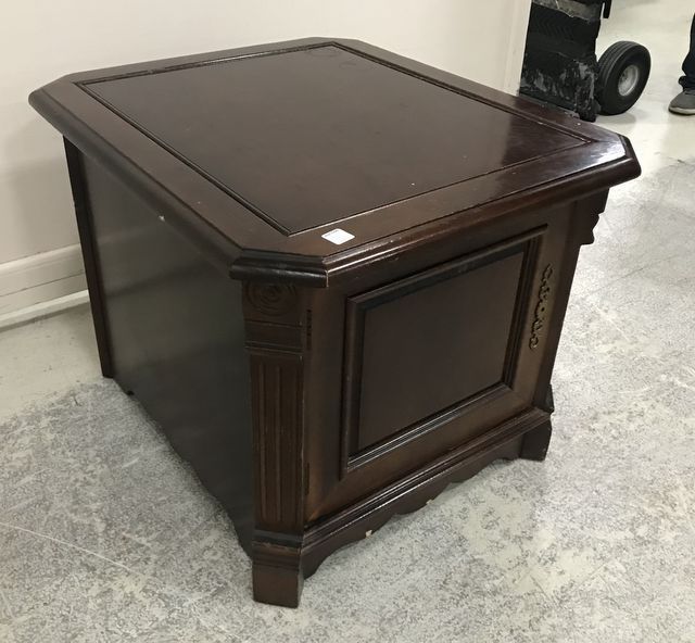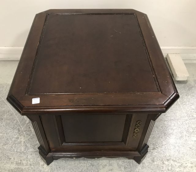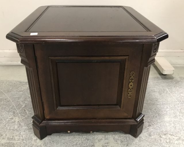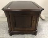 Cherry Single Door Side Table, has finish wear, 22"h., 25"w., 28"d. Cherry Single Door Side Table, has finish wear, 22"h., 25"w., 28"d.
