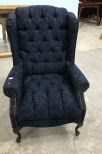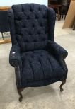 Tufted Navy Blue Queen Anne Arm Chair, needs cleaning, 45"h. Tufted Navy Blue Queen Anne Arm Chair, needs cleaning, 45"h.