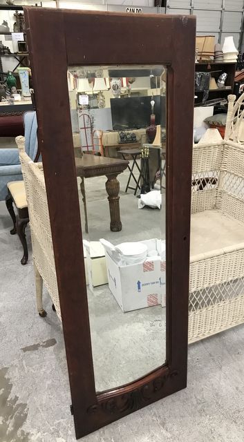 Antique Mirrored Armour Door, just a single door, has carved crest, 61"h., 21"w. Antique Mirrored Armour Door, just a single door, has carved crest, 61"h., 21"w.
