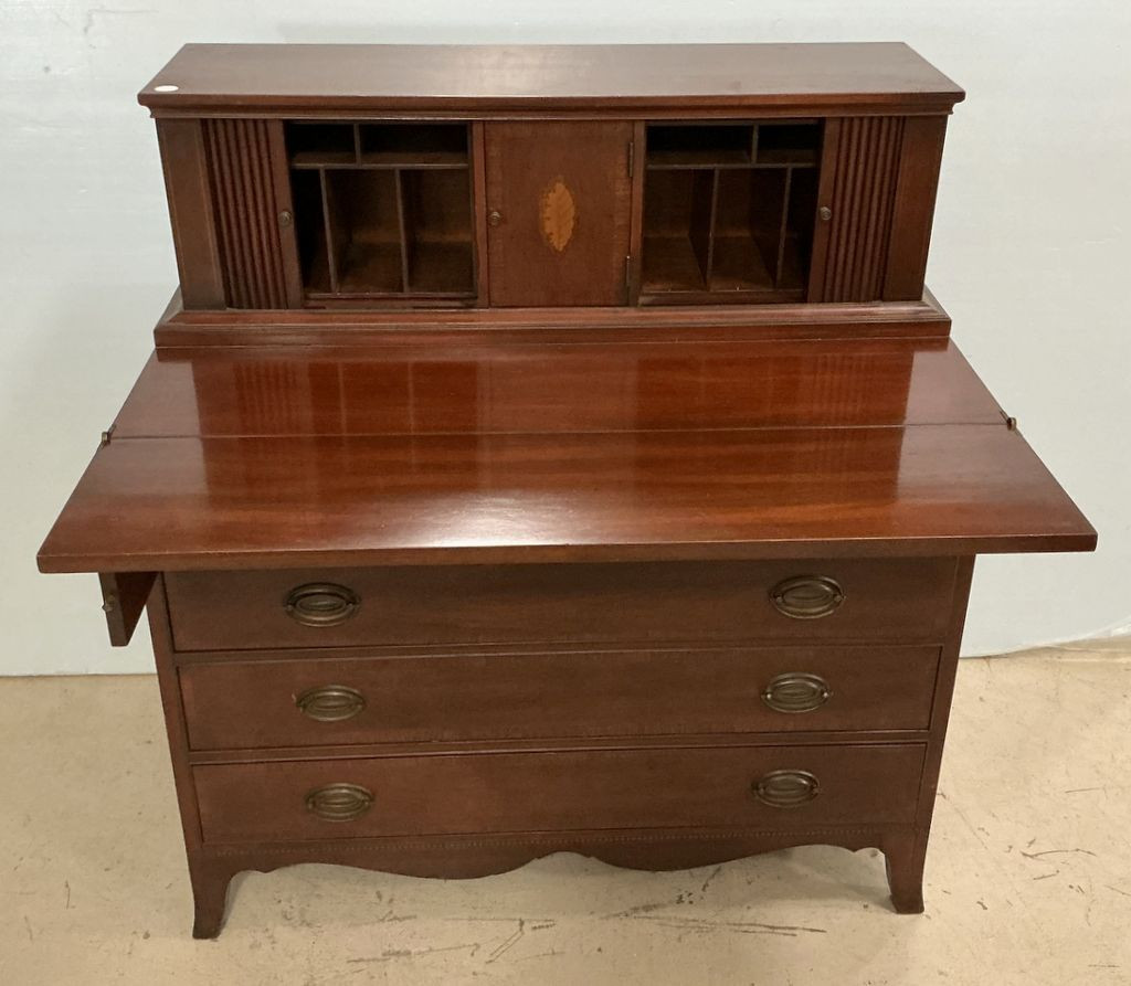 205 41"h., 38"w., 20"d Mahogany Tambour Door Secretary Writing Desk