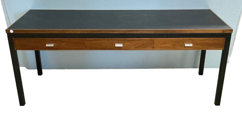 Mid-century modern campaign-style desk 29"h., 72"w., 24"d Mid-century modern campaign-style desk 29"h., 72"w., 24"d