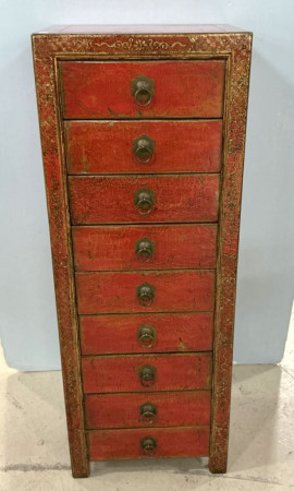 303 Red Tibetan Style Chest of Drawers 56"h, 21"w