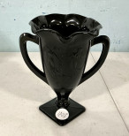 326 L.E. Smith black amethyst glass trophy vase 7"