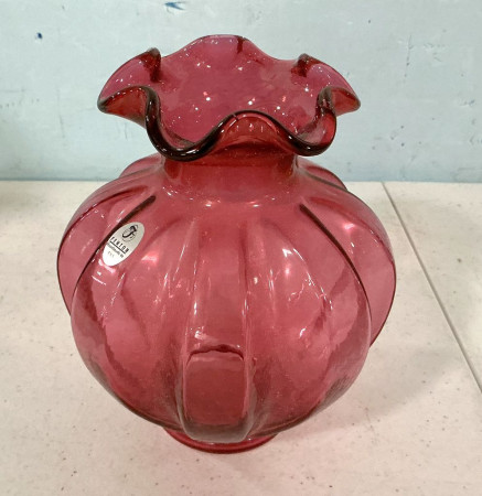 Fenton Cranberry Melon Vase 6" Location Front Shelves Fenton Cranberry Melon Vase 6" Location Front Shelves