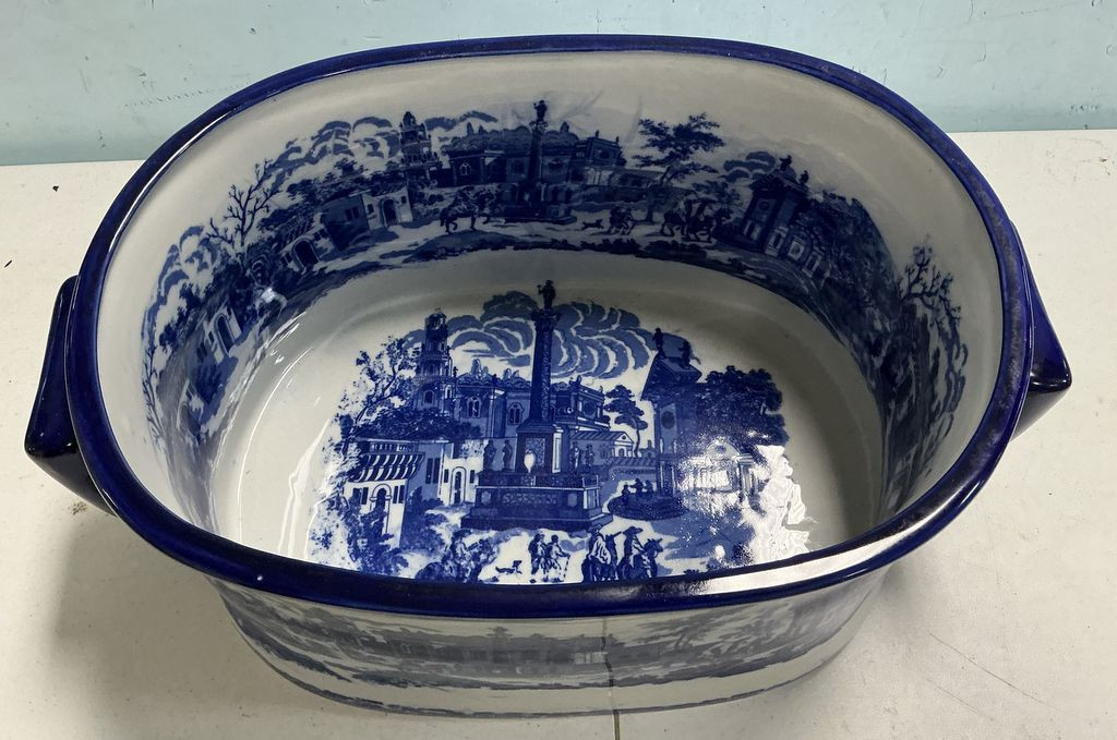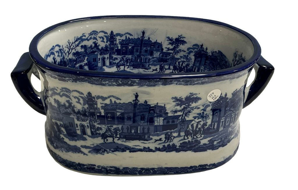 329 Victoria Ware Blue White Planter 9"h., 16"w