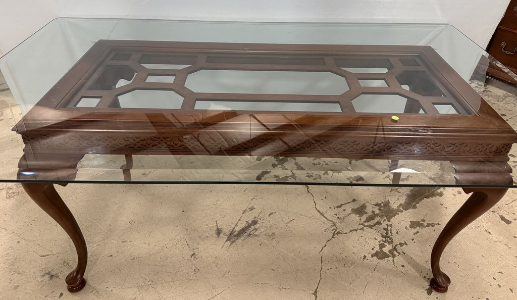335 Chinese Chippendale Glass Top Dining Table 29"h., 72"w, 42"d
