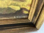 R. Harkins Landscape Painting on Board 21"h., 24"w Location Front Shelves R. Harkins Landscape Painting on Board 21"h., 24"w Location Front Shelves