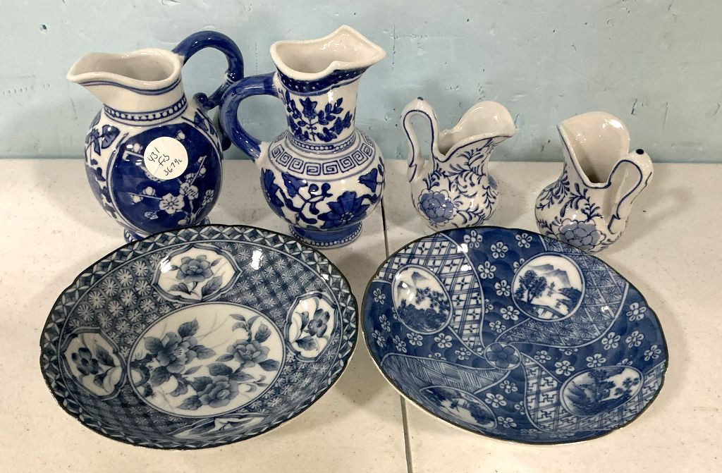 431 Blue and White Pottery Pitchers and Bowls