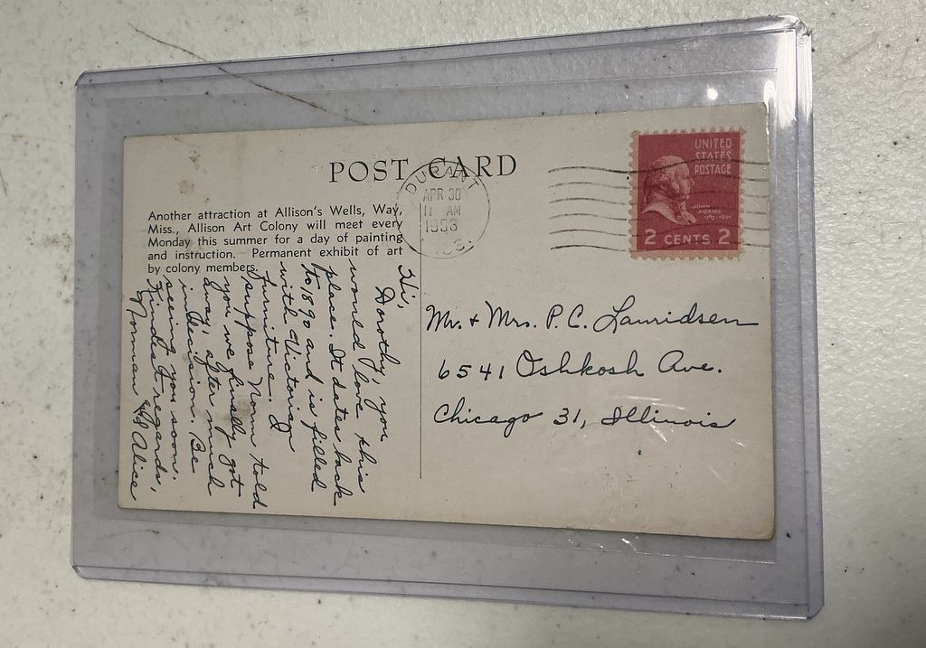 Allison's Wells Art Colony 1953 Postcard with 2 cent Stamp Location Front Shelves Allison's Wells Art Colony 1953 Postcard with 2 cent Stamp Location Front Shelves