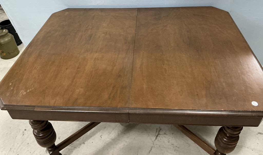 Jacobean Mahogany Dining Table two leaves, 29"h., 53"w., 40"w. Jacobean Mahogany Dining Table two leaves, 29"h., 53"w., 40"w.