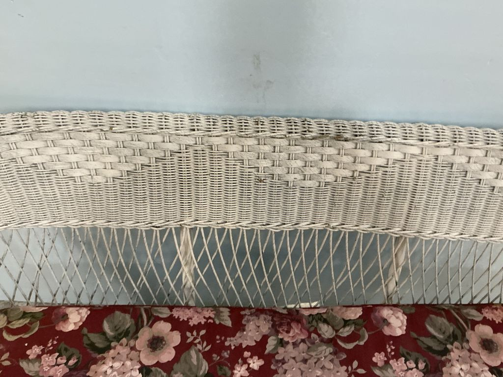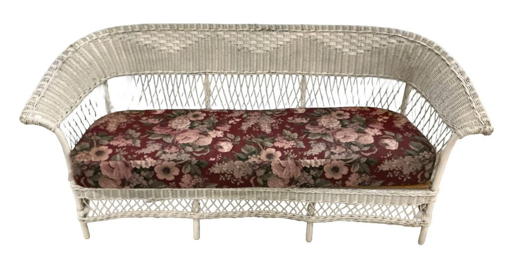 VTG White Wicker Sofa 71", cushion seat. VTG White Wicker Sofa 71", cushion seat.