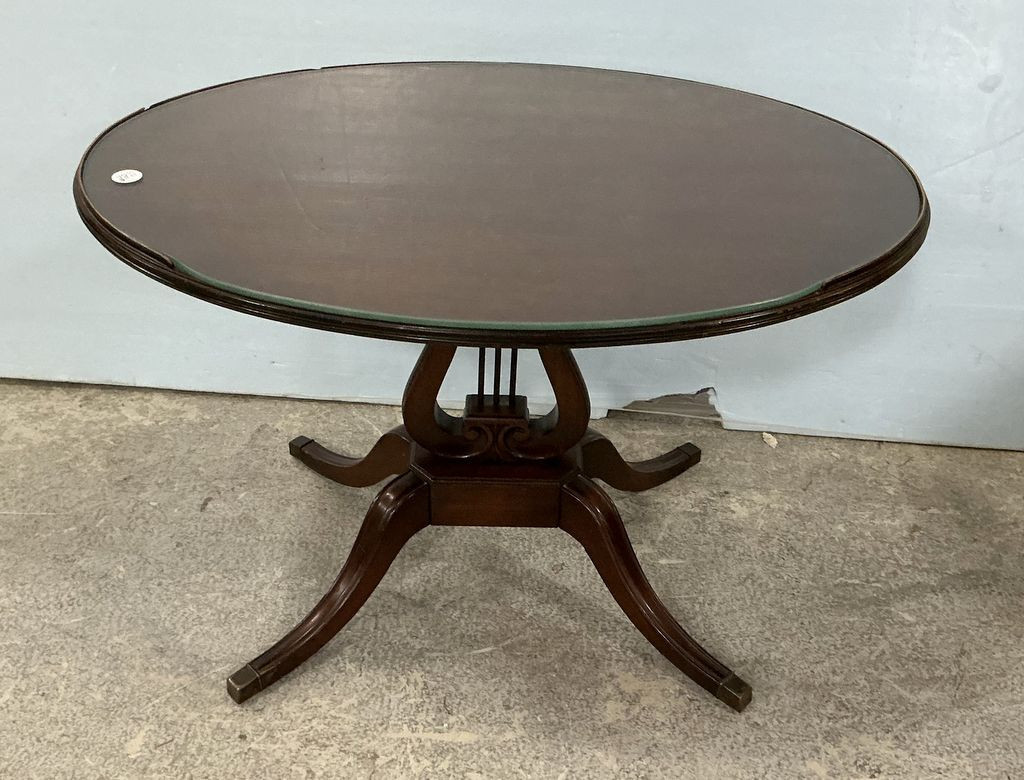 Duncan Phyfe Oval Accent Table 20"h., 30"w, lyre base, Duncan Phyfe Oval Accent Table 20"h., 30"w, lyre base,