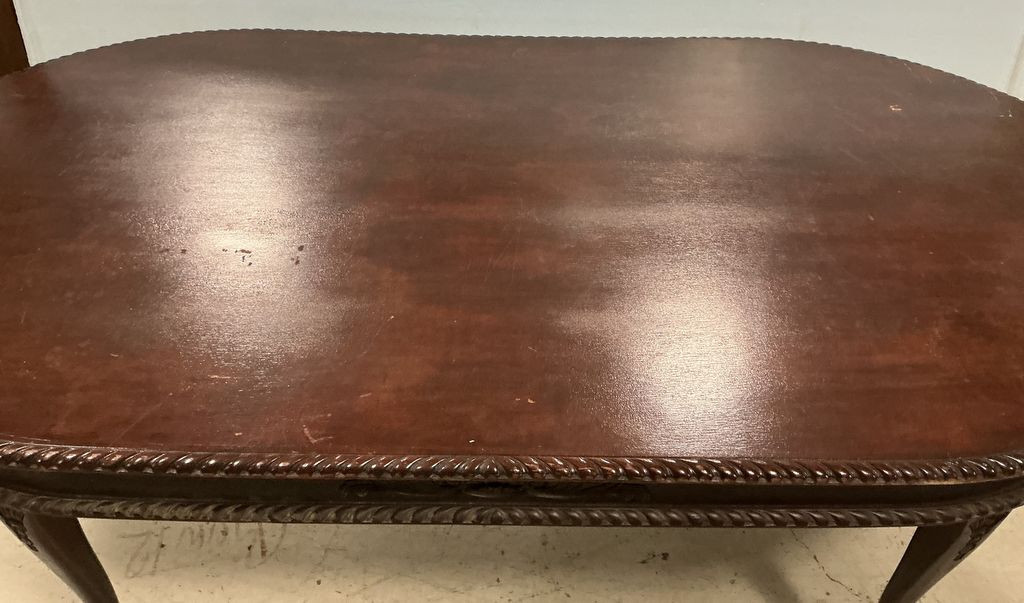 Antique Ball n Claw Banquet Table 30"h., 83"L, 44"w, normal wear. Antique Ball n Claw Banquet Table 30"h., 83"L, 44"w, normal wear.