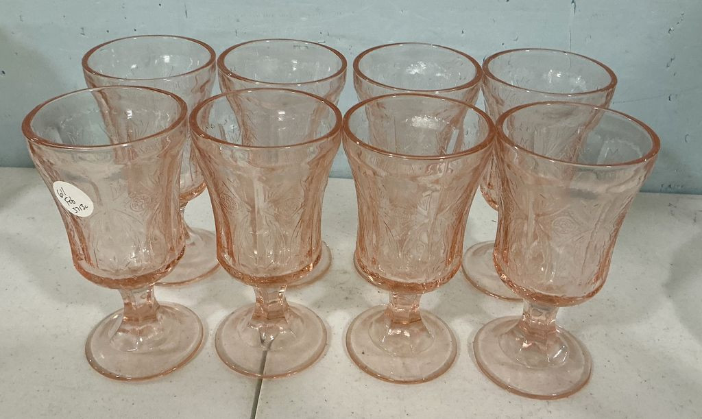 8 Depression Glass Ice Teas Location Back Metal Shelves 8 Depression Glass Ice Teas Location Back Metal Shelves