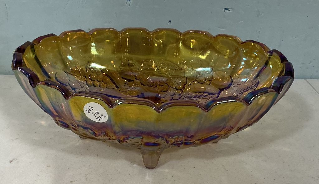 Carnival Glass Footed Bowl 12" Location Back Metal Shelves Carnival Glass Footed Bowl 12" Location Back Metal Shelves