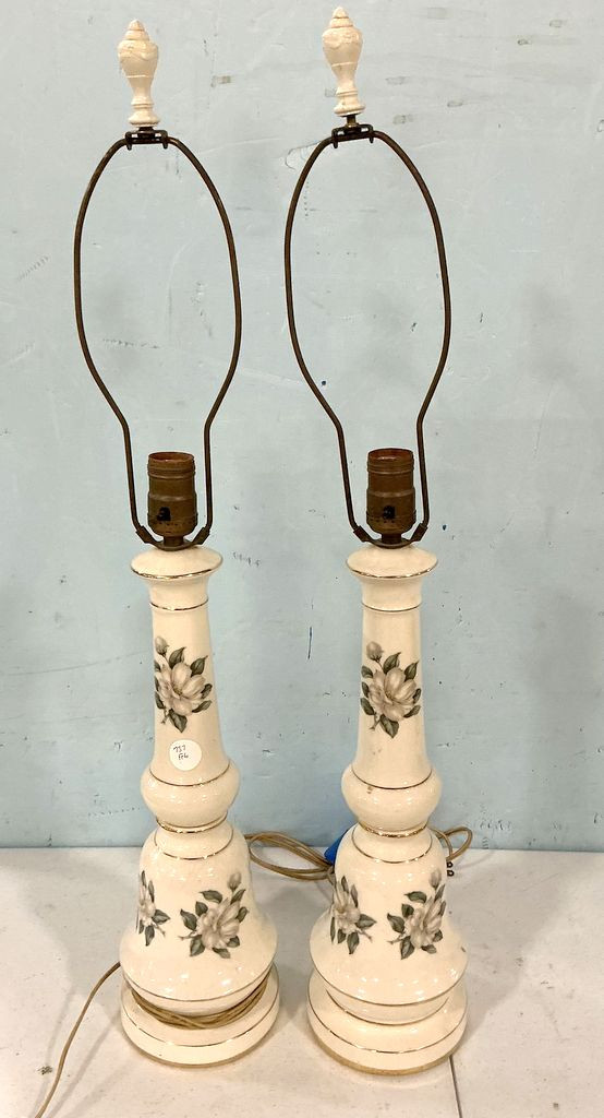 737 Pair of Ceramic Floral Lamps 29"