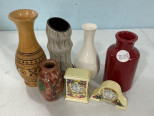 Assorted Vases and Clocks Location Back Metal Shelves Assorted Vases and Clocks Location Back Metal Shelves