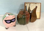 842 Ceramic Piggy Bank, Pumpkin, Wood, and Mirror