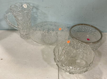 Pressed Glass Pitcher and Bowls Location Back Metal Shelves Pressed Glass Pitcher and Bowls Location Back Metal Shelves
