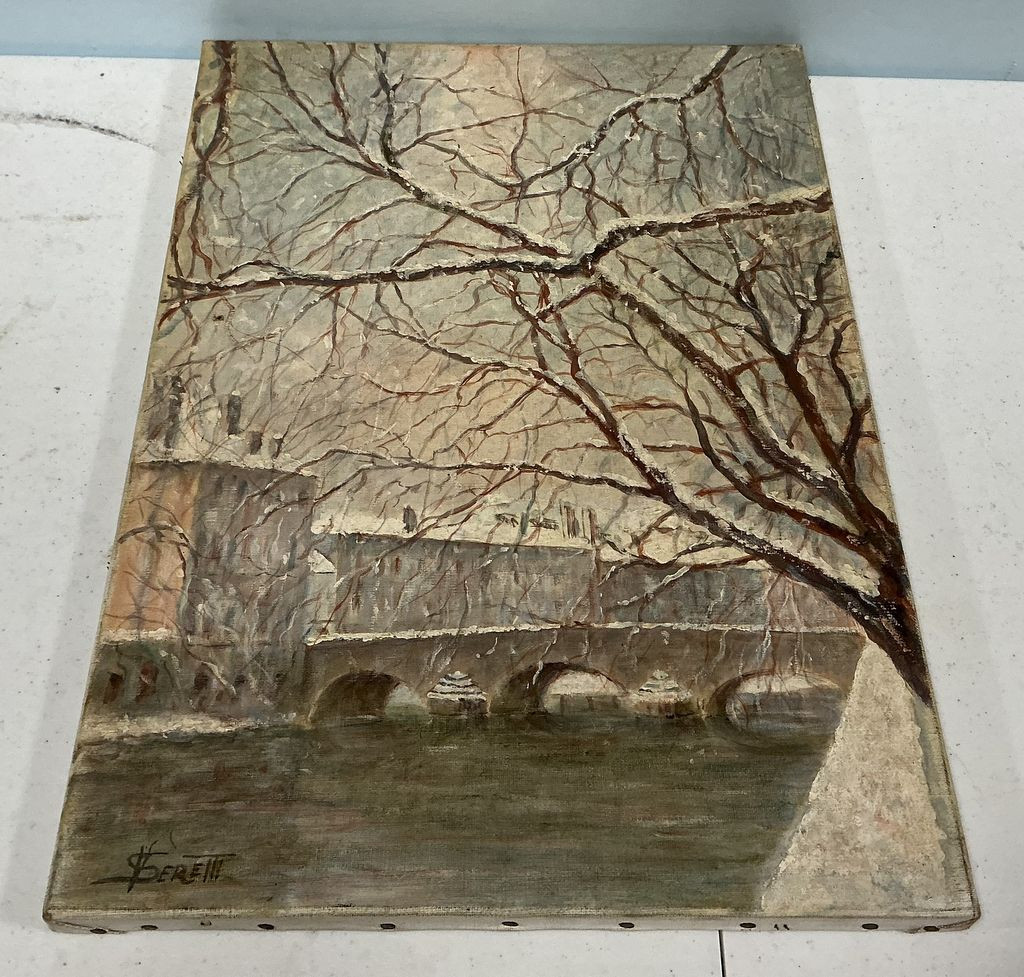 902 22"h., 15"w Signed V Seretti Snow Painting