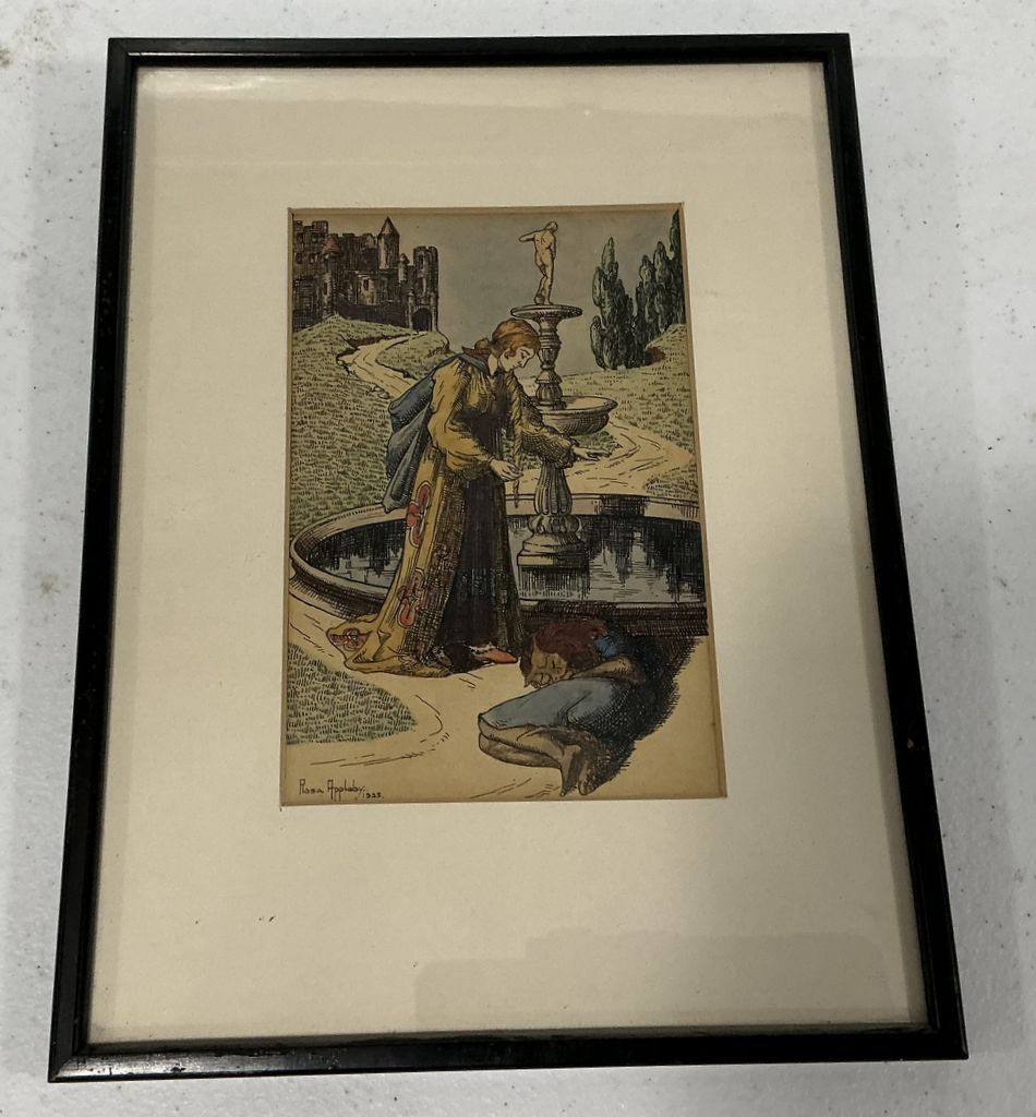 framed, 12" x 10" Rosa Applaby 1928 Hand Colored Artwork framed, 12" x 10" Rosa Applaby 1928 Hand Colored Artwork