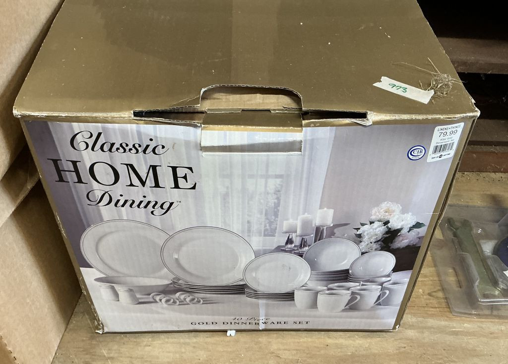 Classic Home Dining Gold Dinnerware 40 Piece, Location Shed Classic Home Dining Gold Dinnerware 40 Piece, Location Shed