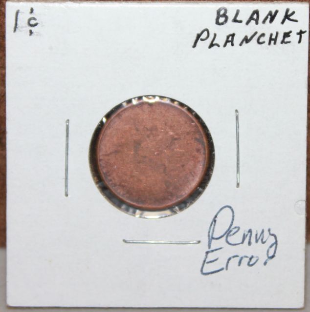 Penny Error Coin (one cent coin), Blank Planchet Penny Error Coin (one cent coin), Blank Planchet