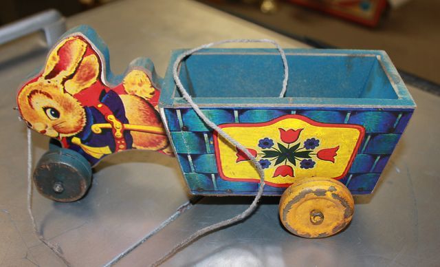 Child's Rabbit Pull Toy, rabbit with wagon Child's Rabbit Pull Toy, rabbit with wagon