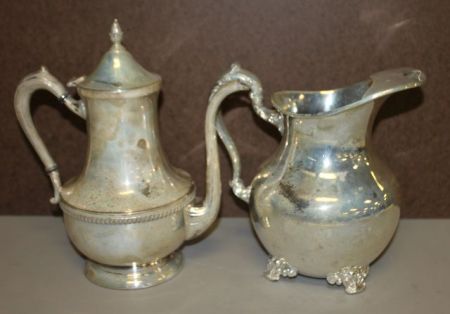Two Silverplate Pitchers, Poole Old English E.P.O., Sheets Rockford Two Silverplate Pitchers, Poole Old English E.P.O., Sheets Rockford