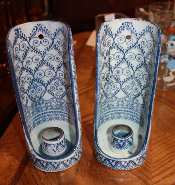Pair of Porcelain Candle Holders, blue and white Pair of Porcelain Candle Holders, blue and white